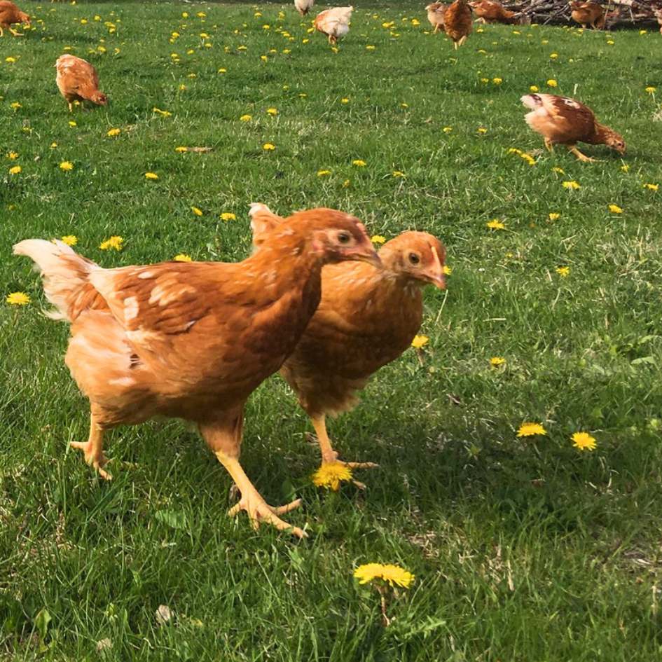 Our regenerative, pasture-raised, organic fed chickens thrive in their free range environment here at Grazing Patch Farm and are chemical free (no hormones, additives, chemicals, etc.)