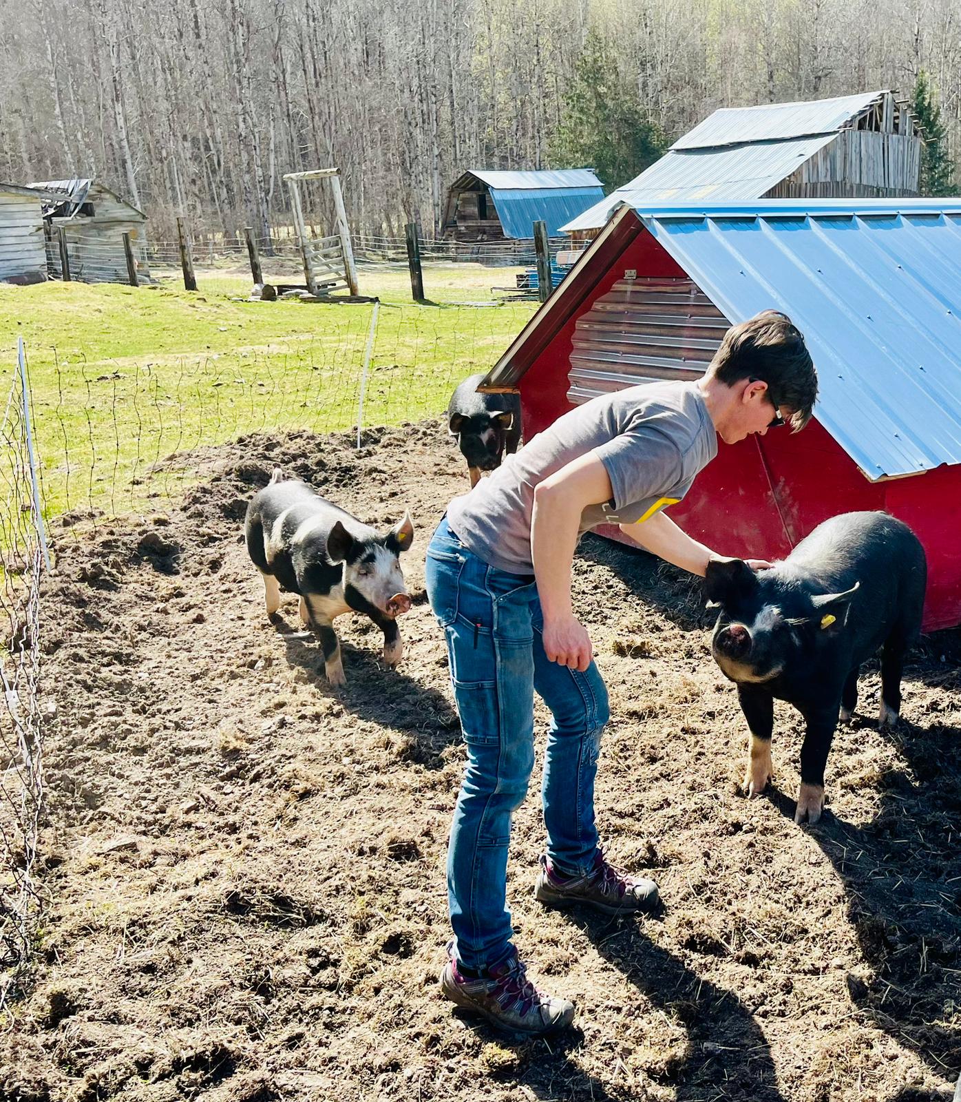 And, these pigs have a friendly temperament which is just great for everyone! They are well taken care of with regular back scratches and visit daily water holes to wallow and play in on hot days! They even have their very own Pig Palace.